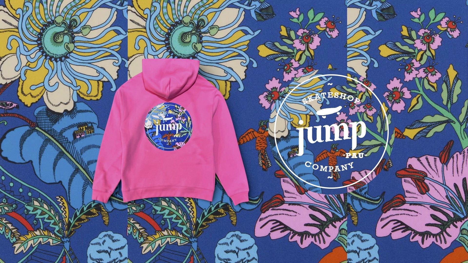 SWEAT CAPUCHE LESFLEURS fushia / flowerblue